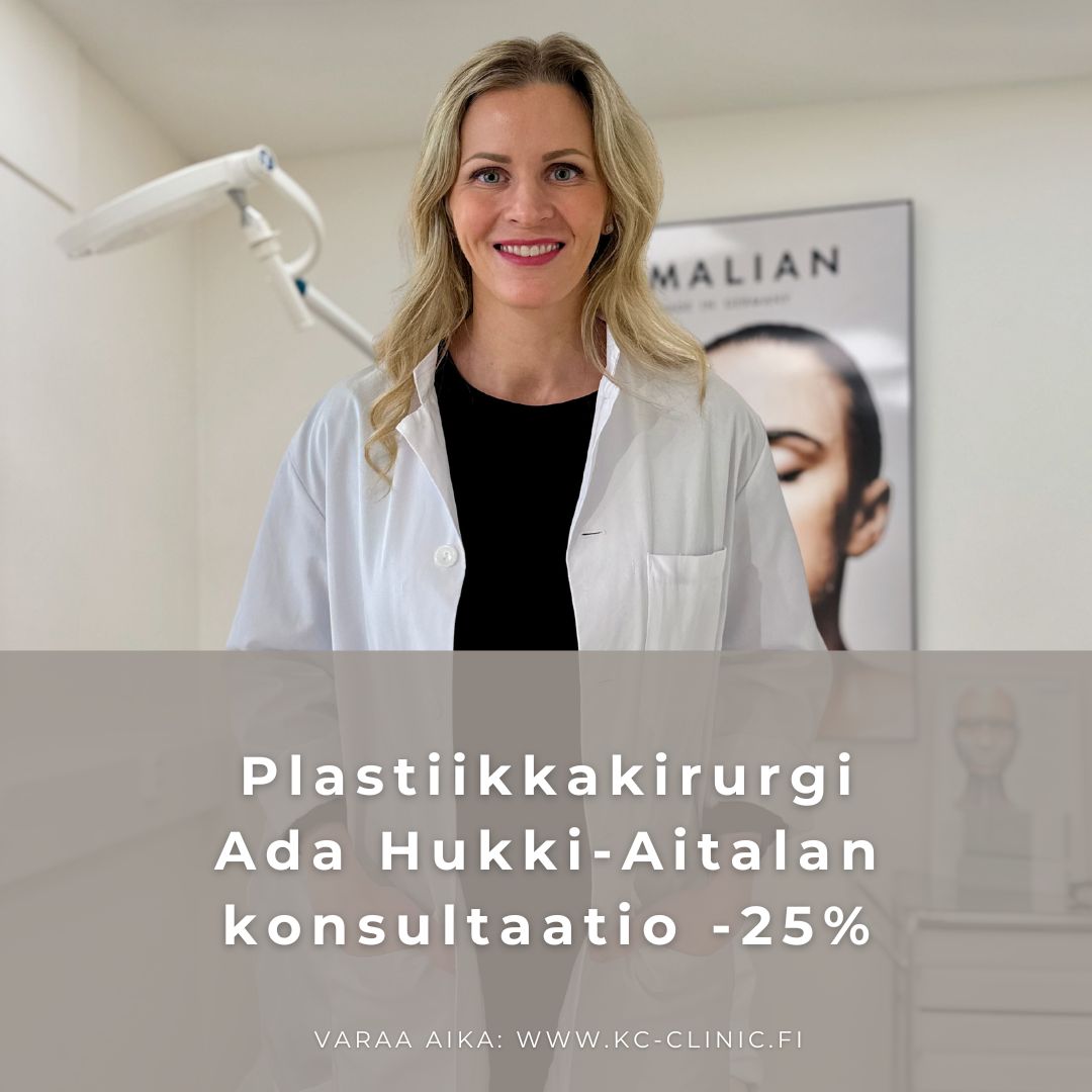 Haluaisitko hyödyntää kesän -25 % alennuksen plastiikkakirurgi Ada Hukki-Aitalan konsultaatiosta? Varaa tästä aika konsultaatioon. Muista mainita varauksen lisätietoa kohdassa “Ada25”.